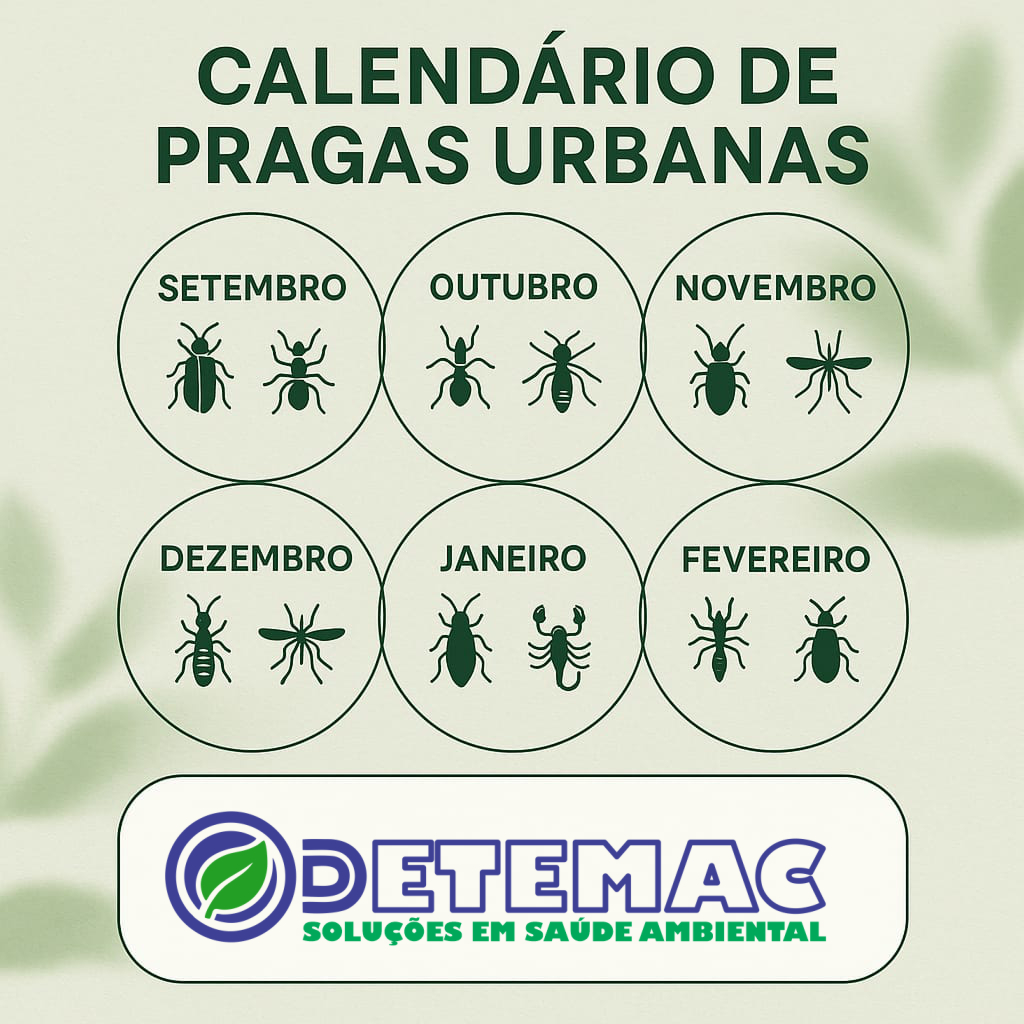 Mosquitos, baratas, cupins e escorpiões voltam com força na primavera. Veja o calendário mês a mês e saiba como proteger seu ambiente.